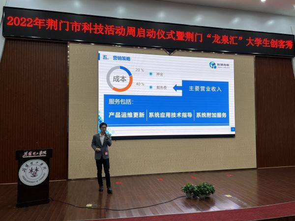 在随后的荆门“龙泉汇”大学生创客秀项目创业路演比赛中,来自武汉大学、中国地质大学、武汉工程大学、荆楚理工学院等11所高校带来的12个项目逐一亮相,面向专家评委进行路演。