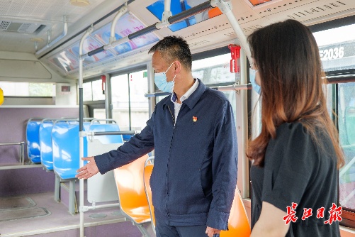 张兵带主持人参观531路公交车。 长江日报记者吴思 摄