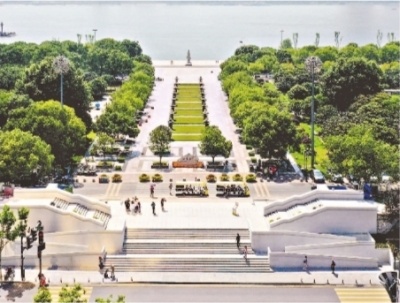 汉口江滩三阳门入口左右均有无障碍通道。