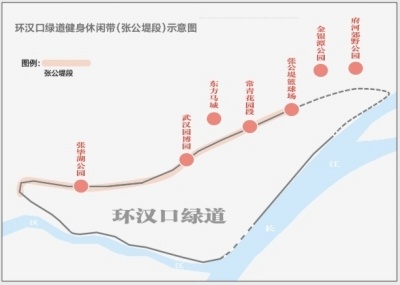 2021年底发布的《市人民政府办公厅关于推动全民健身和体育消费促进体育产业高质量发展的意见》提出,“优化健身休闲产业空间布局,以‘两江四岸’‘东湖绿心’和‘环汉口绿道’为着力点,发展和完善城市健身休闲功能区,全面建成主城区三大健身休闲运动带”。