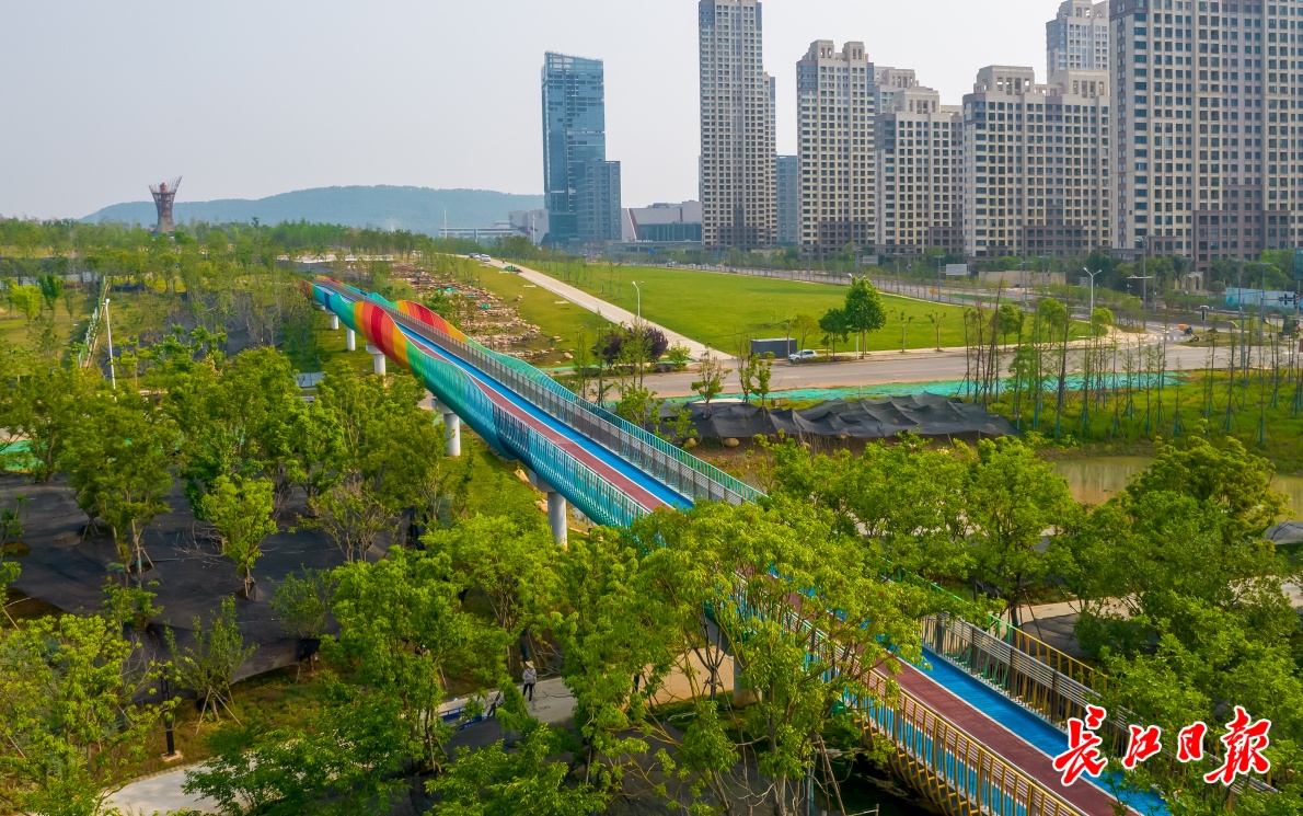 光谷生态大走廊“彩虹桥”,光谷生态大走廊惠及周边科技园区和居民区。 通讯员康鹏 记者任勇 摄