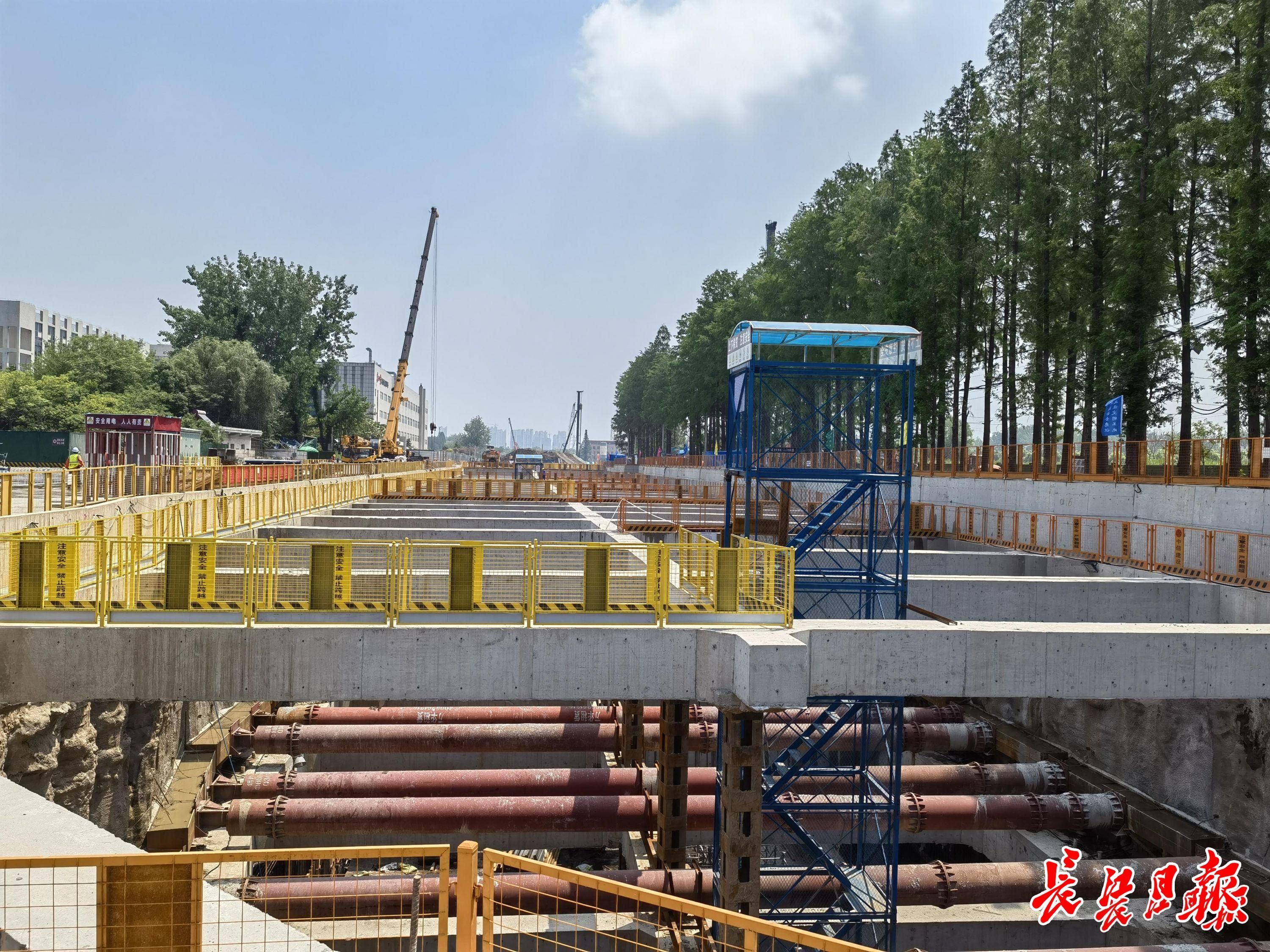 25日,记者在由中信建设有限责任公司承建的长江新城谌家矶大道(解放大道—三环线)工程现场看到,位于长江二级阶地的隧道控制性工程正在有序施工,已完成底板浇筑270米。