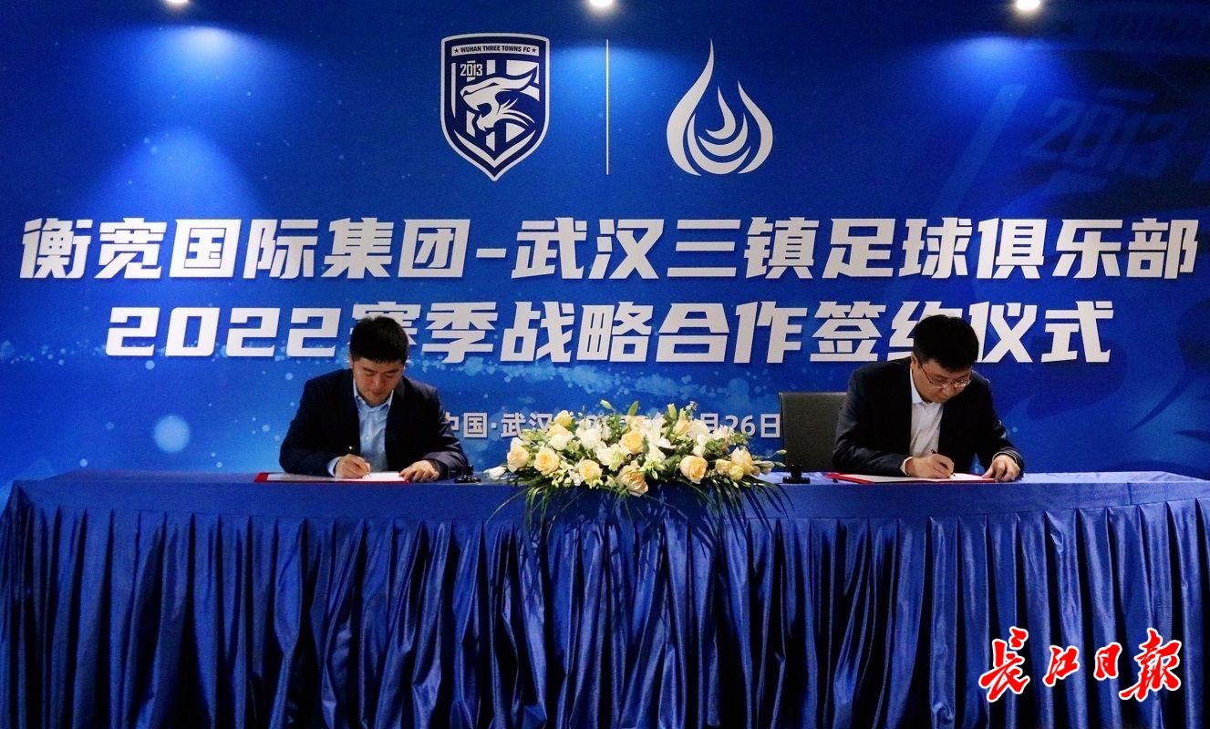 长江日报大武汉客户端5月26日讯(记者马万勇)5月26日,武汉三镇足球俱乐部与衡宽国际集团达成2022赛季战略合作协议,双方合作签约仪式在武汉三镇足球俱乐部光谷训练基地举行。据悉,武汉三镇队将于27日启程,出征大连,迎接俱乐部历史上的第一个中超赛季。