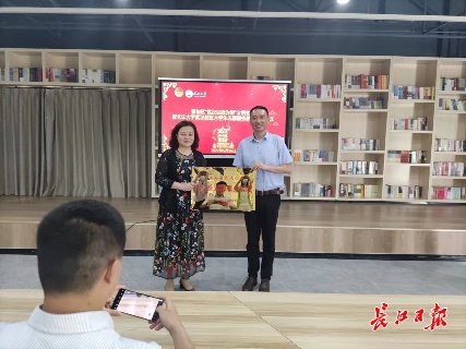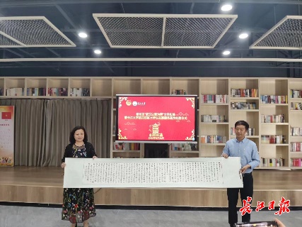 长江大学向蔡甸区新时代文明实践中心赠予书法作品。 长江日报记者张衡 摄