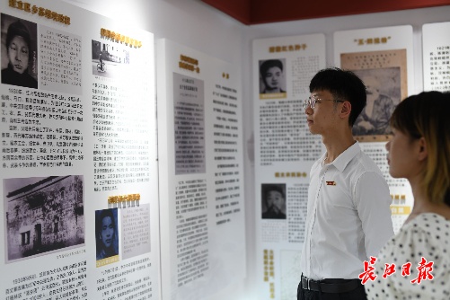 长江大学大学生参观蔡甸“四史”印记图片展。 长江日报记者张衡 摄