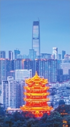 2021年7月,袁佳瑞拍摄的黄鹤楼与绿地中心同框。