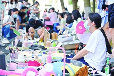 5月26日,中南民族大学校园内的“跳蚤市场”开市。毕业生们售卖和转让学习资料、衣物以及生活用品等,很萌很直接的标语和低廉的价格吸引不少学弟学妹前来“淘宝”。毕业生们表示,摆摊其实也是告别校园生活的一种方式,想把四年带不走的青春记忆留在这个夏天。