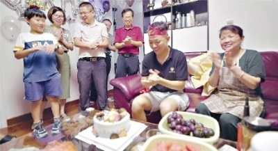 家人为钟家金(右二)庆祝生日。