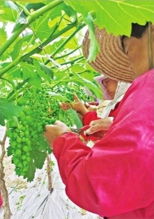 近日,蔡甸区张湾街红星村雨露河谷采摘园,有机肥种植的夏黑和阳光玫瑰葡萄园里,基地农技人员正紧锣密鼓地进行疏果修剪。今年基地葡萄产量预计可达5万斤左右,6月中下旬将迎来采摘高峰。商春霞 摄