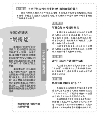 去年9月至今年1月,4名婴儿因食用疑似受污染的配方奶粉患病,其中两名婴儿死亡。FDA去年9月即已获悉有婴儿食用疑似受污染奶粉,但是直到今年1月31日才开始检查涉事奶粉工厂。