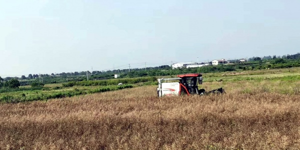 畅享荣达农机专业合作社油菜全程机械化收割场面。通讯员周小平 摄