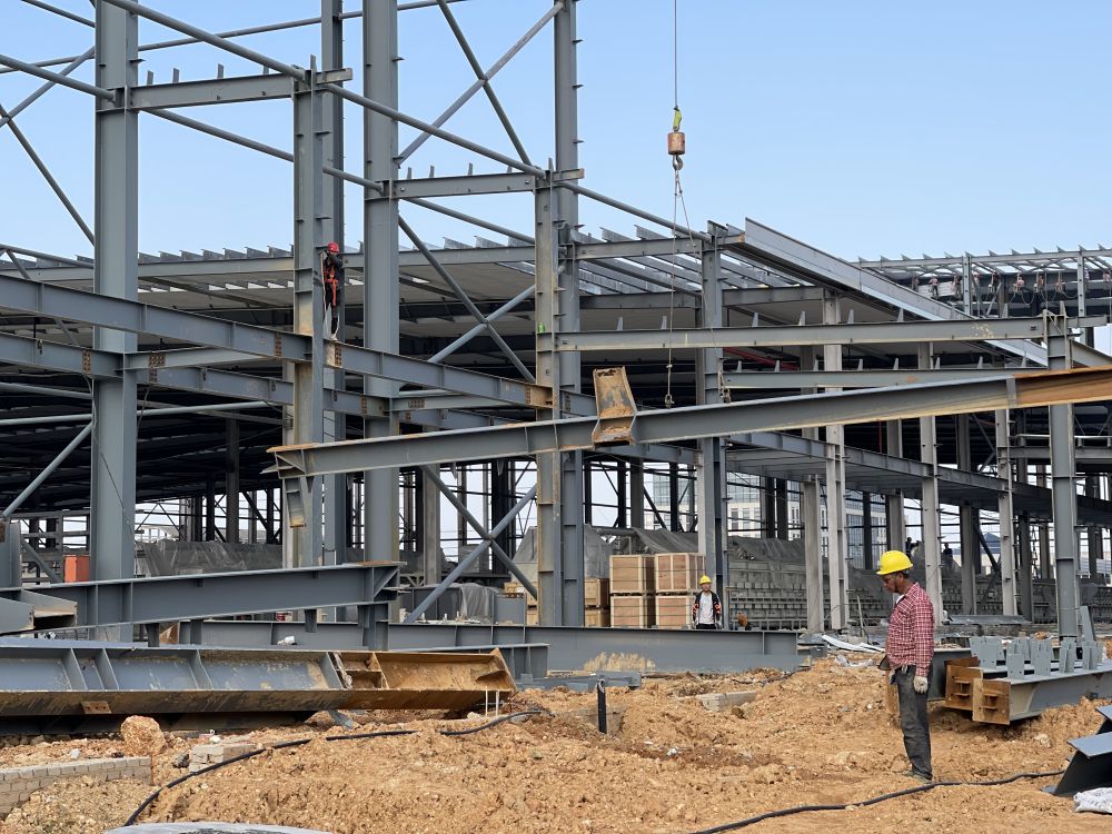 2022年5月16日,在湖北融通高科先进材料有限公司产业园,工人正在进行安装作业。 新华社记者王自宸 摄