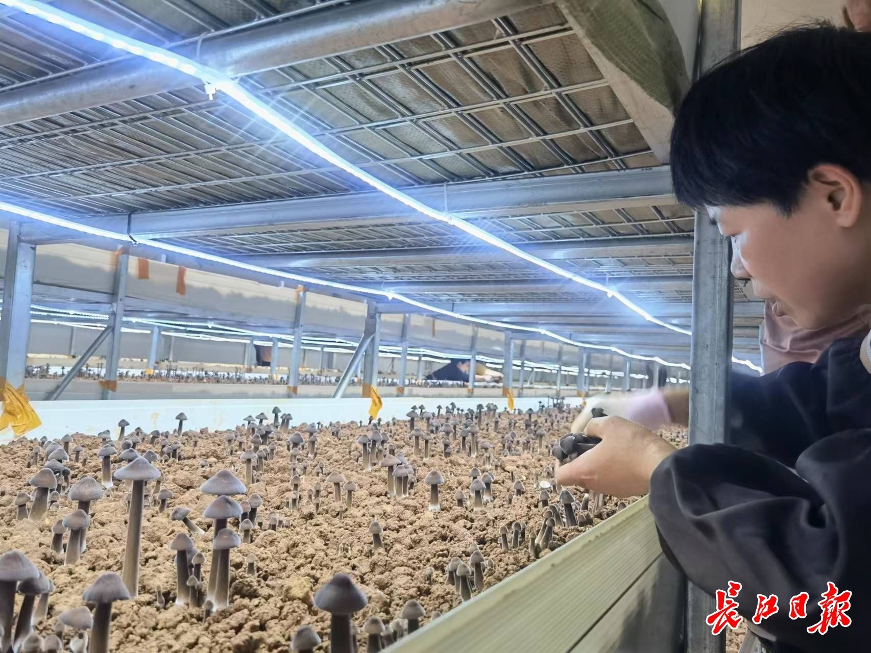 工人正在加紧采收鸡枞菌。长江日报记者贾蓓 摄