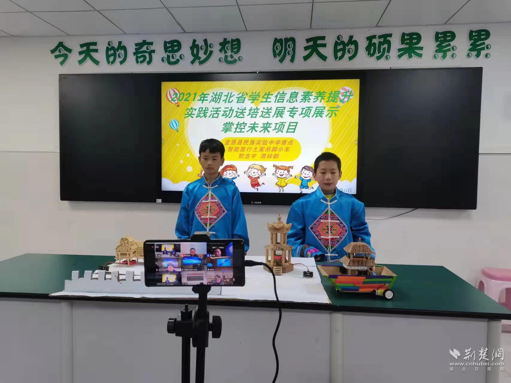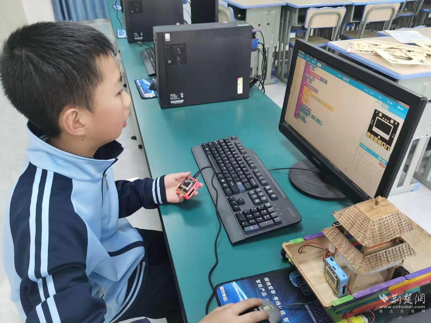 2021年在湖北省学生信息素养提升实践活动中,他将家乡的特色建筑吊脚楼和优美的贡水河结合,在老师的帮助下设计了《土家吊脚楼自动旅游船》,荣获了创客项目初中——掌控未来省一等奖。