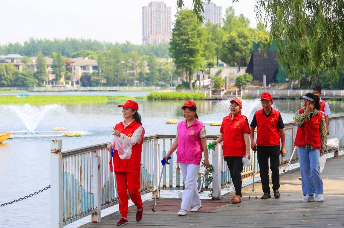周桂珍说,夏日湖边蚊虫叮咬、冬天路面寒冷湿滑,但是队员们从不抱怨,头戴小红帽、身穿红马甲、手持垃圾夹,巡湖护湖,还会配合物业公司在湖边补种花花草草。在大家的共同努力下,塔子湖的栈道卫生和水质越来越好,已然成为周边居民散步锻炼的好去处,“居民们都夸梦湖护湖志愿服务队是塔子湖的风景线咧!”