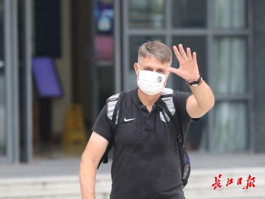 主教练佩德罗率队兵发大连。 记者马万勇 摄