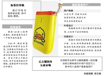 胡先生家中的这些各式各样的标签,均由一个小小的智能标签打印机打印而成。5月27日,长江日报记者来到位于洪山区创意天地园区的精臣智慧标识科技有限公司(以下简称“精臣智慧”),其生产的智能标签打印机,已占据国内五成市场,在京东、淘宝等网购平台多年占据销量第一的位置,目前已拥有海内外用户四百万人,其中约八成用户是家庭用户。