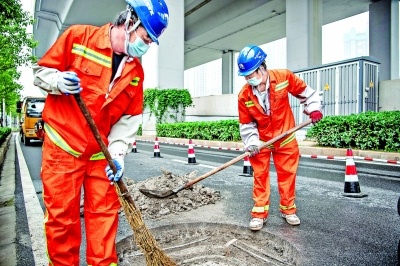 “昨天接到任务单,这里两处井盖,一个轻微下陷,一个破损。我们的要求是上午的单子下午要完成,但是昨天下雨,对沥青施工质量有影响,今天天晴了赶紧过来。”近日,汉阳市政运维公司施工现场管理人员周毅恒介绍,今年汉阳区城管局全面启动城区井盖专项整治,对道路井盖破损、井周下沉等问题进行彻底整治。该公司负责全市部分区域市政、城管、自来水等检查井井盖的管养任务,12345热线一旦接到和井盖相关投诉,就会通过联动机制向公司智慧管养平台下任务单。“旁边有所情智高中,车子经过这两个井盖总是‘哐哐’响,影响学生学习。”