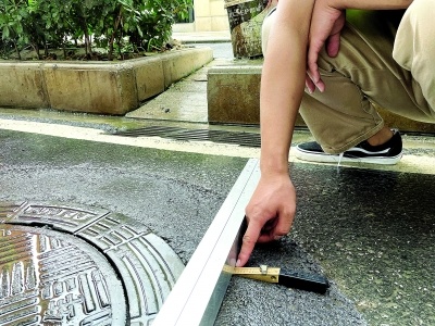 随后,工人搬出新井盖放入井槽,打夯机一通作业,井盖与周边路面完美衔接,浑然一体。周毅恒蹲下身用塞尺测量,“落差1毫米”。他表示,按武汉市相关技术规定中对井盖平整度的要求,井盖、井圈与路面平齐,高差须小于3毫米,“我们的施工标准是高差在1.5毫米左右,车轮碾压后,也能保证落差在3毫米内。之所以定3毫米的界限值,是因为我们试验过,高差3毫米以内车轮碾压后不会发出响声,车辆来去不会造成扰民,同时允许有一定的操作误差。这套‘防沉降检查井快速维修施工工法’已获省级工法证书”。