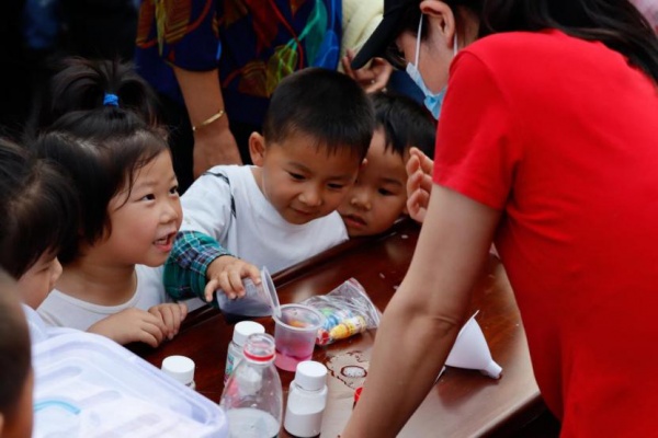 “爱心妈妈”在给孩子们做实验。 通讯员方文东 摄