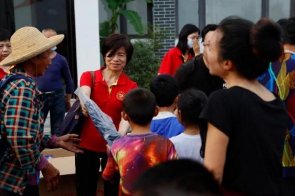 “爱心妈妈”在给孩子们发放礼物。 通讯员方文东 摄