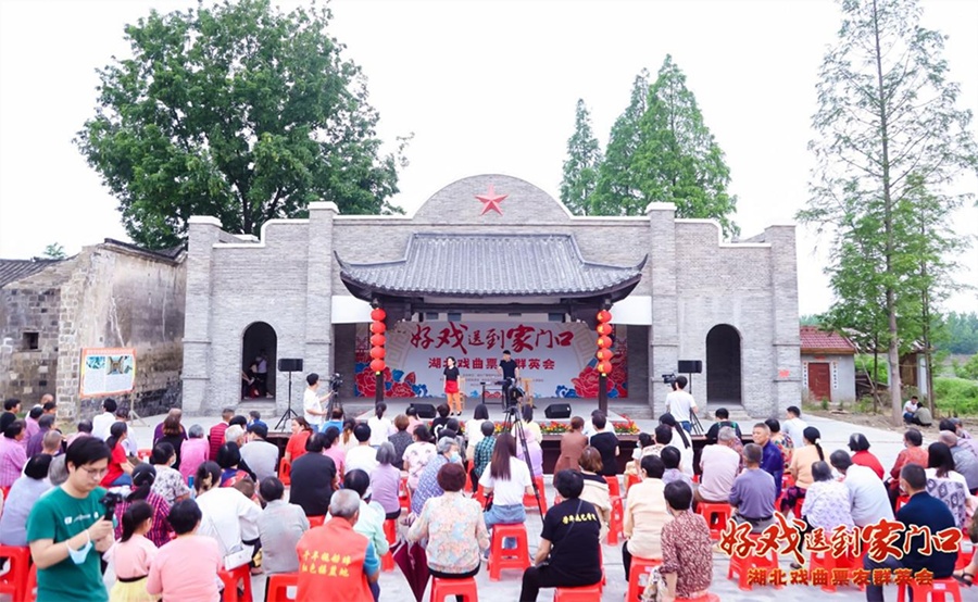 潜江新闻网讯(记者 曹以成)近日,湖北戏曲票友群英会将好戏送到了渔洋镇拖船埠村。当天下午,村民们带着小板凳,骑着三轮车,陆续来到红军戏台。