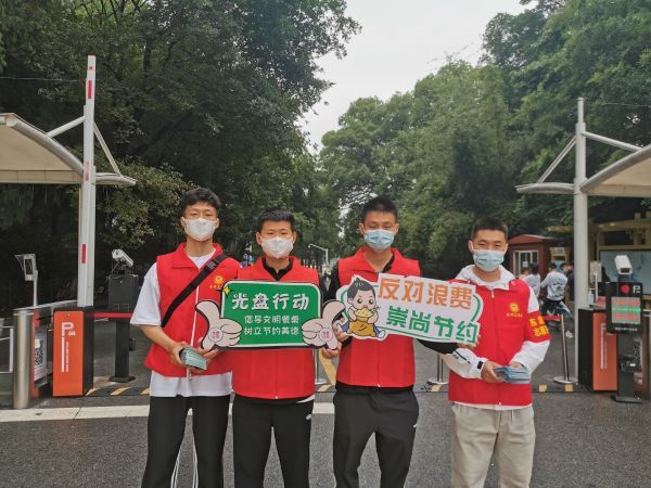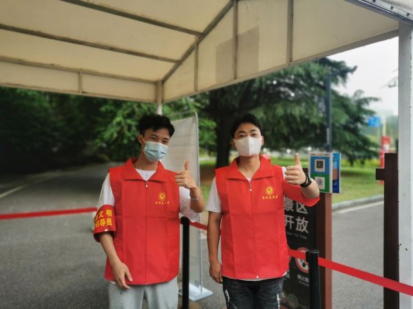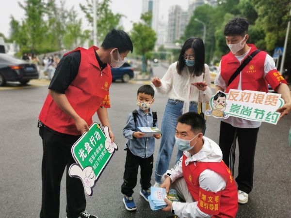 除了维持现场秩序,提醒游客做好防疫工作,志愿者们还积极开展文明旅游和“反对浪费 崇尚节约”主题宣传,他们手持“光盘行动”“健康出行”“文明旅游”等标语牌,向过路游客发放“疫情防控宣传手册”“武汉市民文明手册”宣传册。