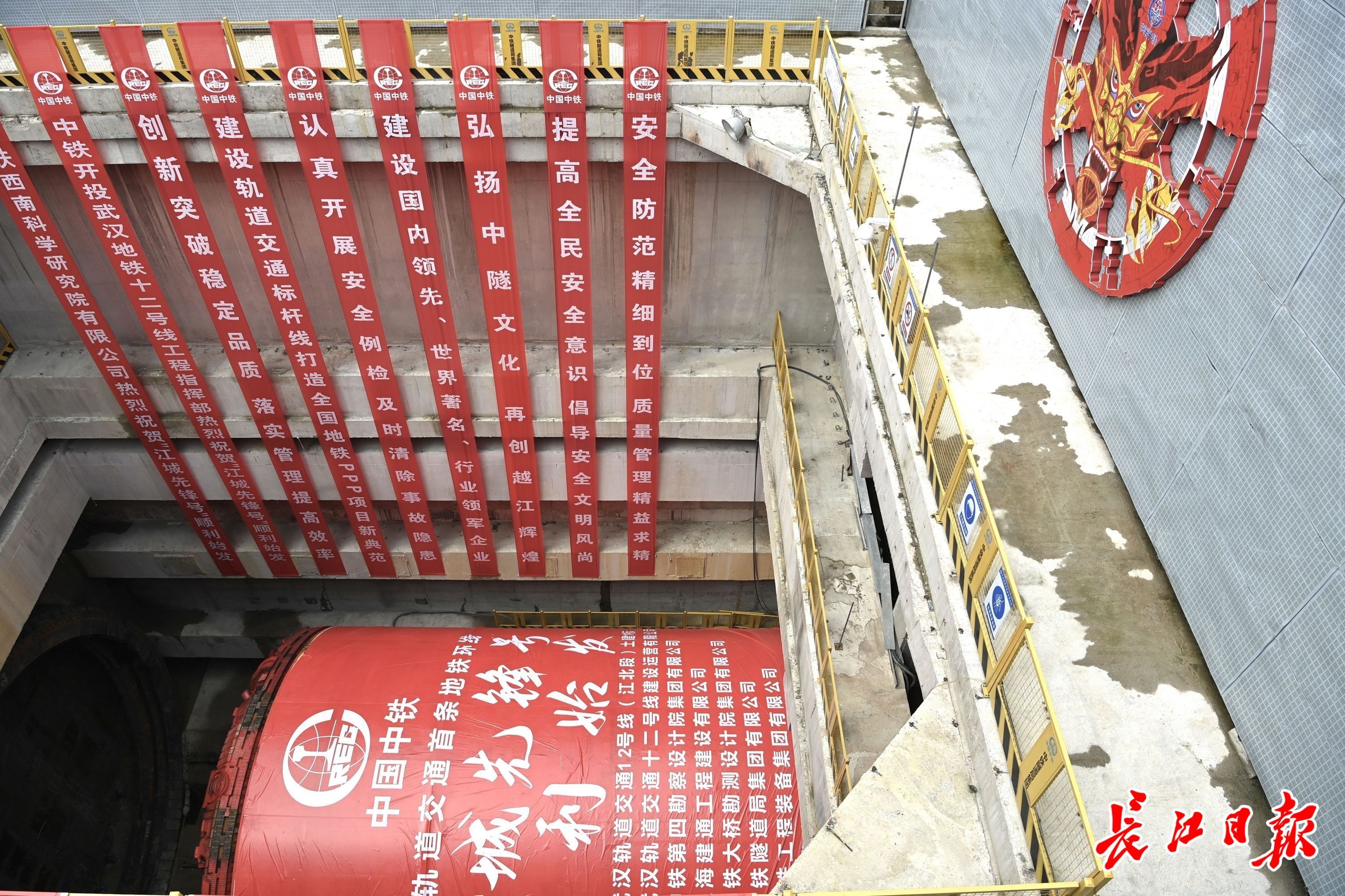 长江日报大武汉客户端5月29日讯 29日上午,武汉地铁首条环线——12号线正式开始穿越长江之旅。现场,国产大直径盾构机“江城先锋号”从国博中心南站始发,向位于长江南岸的凌吴村站掘进。