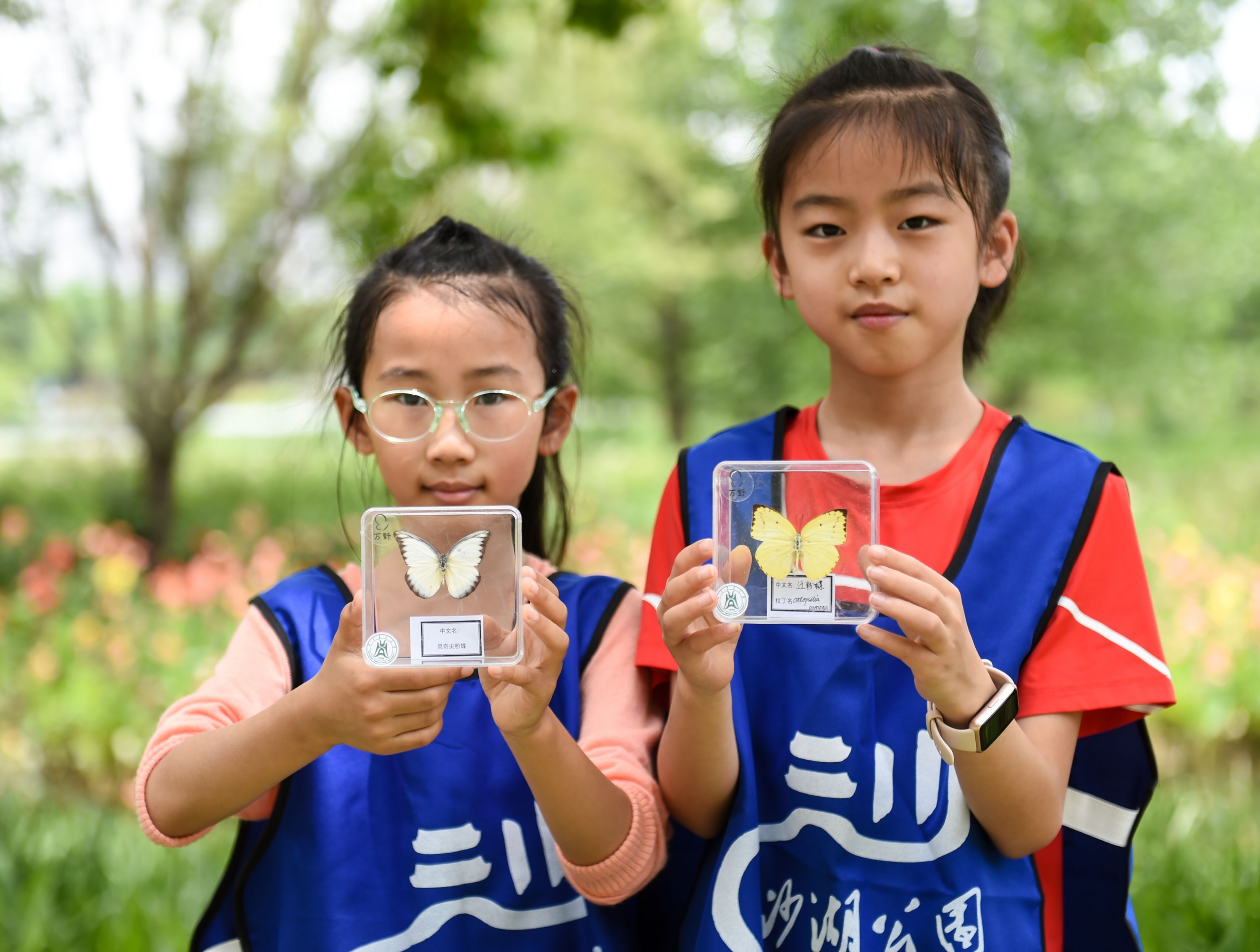 5月29日,小朋友在沙湖公园学习昆虫的变态发育知识,并展示漂亮的蝴蝶标本。记者许魏巍 摄