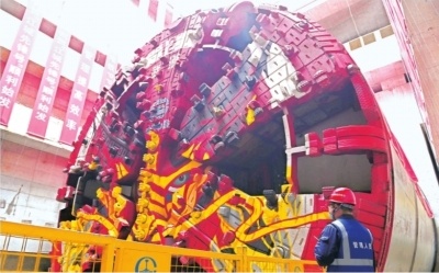 上午,记者深入30余米深的盾构始发井,只见这台大直径盾构机就像一座“地下工厂”,由刀盘、盾体、台车组成。刀盘上的一把把刀具就像牙齿,转动起来,啃噬泥土;与刀盘紧紧相连的是盾体,它的一个重要作用就是提供推力,就像“发动机”,推动盾构机前进;盾体后面就是台车,里面有主控室、液压泵站、配电设备等,司机也在这里工作,驾驶盾构机前行。