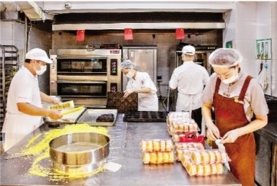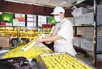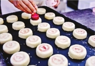 “汪玉霞”创建于乾隆四年(1739年),经过不断创新,现有各类糕点上百种,汪玉霞的绿豆糕也成为武汉人过端午节的仪式感糕点。糕点师傅的传统手艺,搓、揉、合、压,每道工序与步骤都严格把关,才能制作出传承老武汉经典味道的绿豆糕。