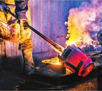 熔化的铜水倒入模具。