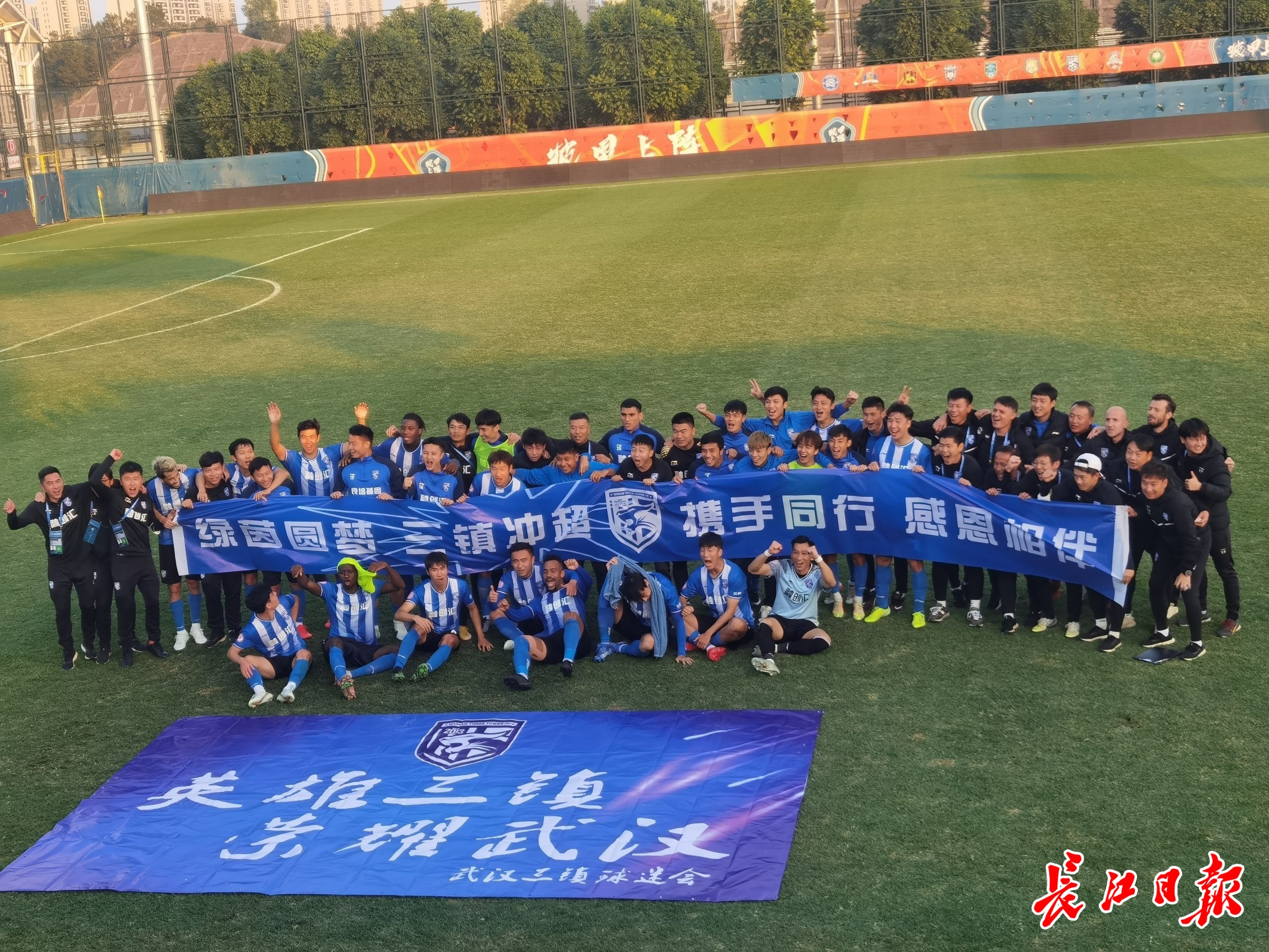 2021年12月13日,武汉三镇队“冲超”成功,武汉足球迎来了“一城双超”的新局面。记者马万勇 摄