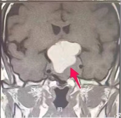 肖女士颅内4厘米的巨型腺瘤。