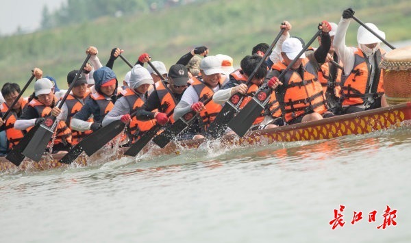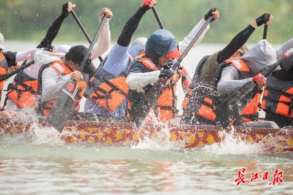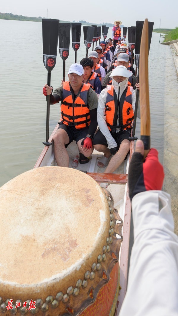 岸边热身、3公里长距离体能训练、技术练习……5月30日,东西湖区汉北河上鼓声阵阵,辛安渡街龙舟队员齐声呐喊,竞划龙舟,尽管烈日炎炎,队员们仍挥汗如雨,楚舸争流。