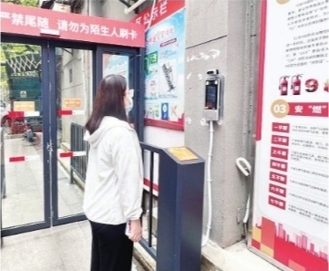 居民通过人脸识别系统进入小区。