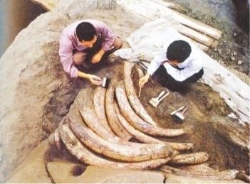 三星堆考古工作人员正在清理象牙。