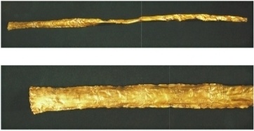 三星堆一号坑出土的金杖及图案。
