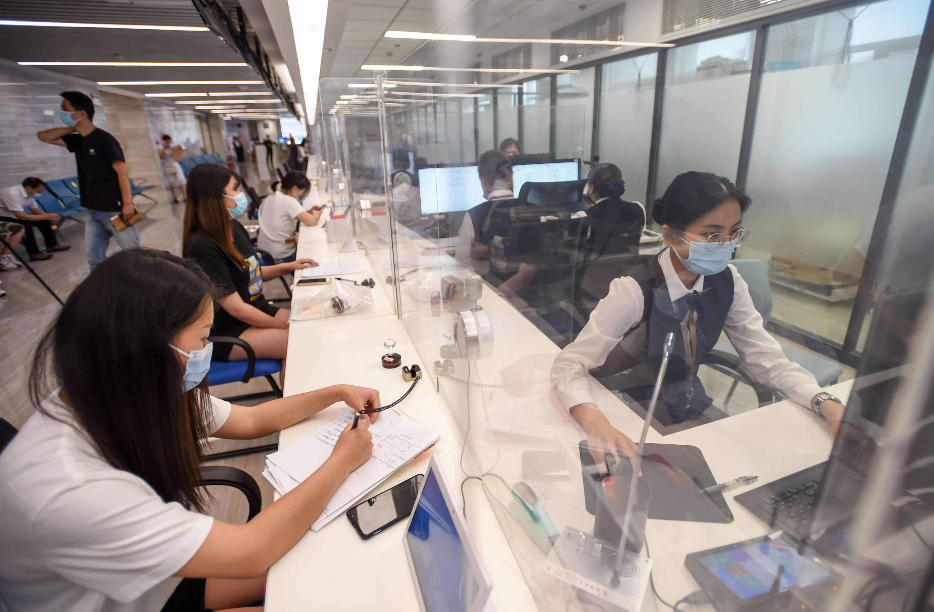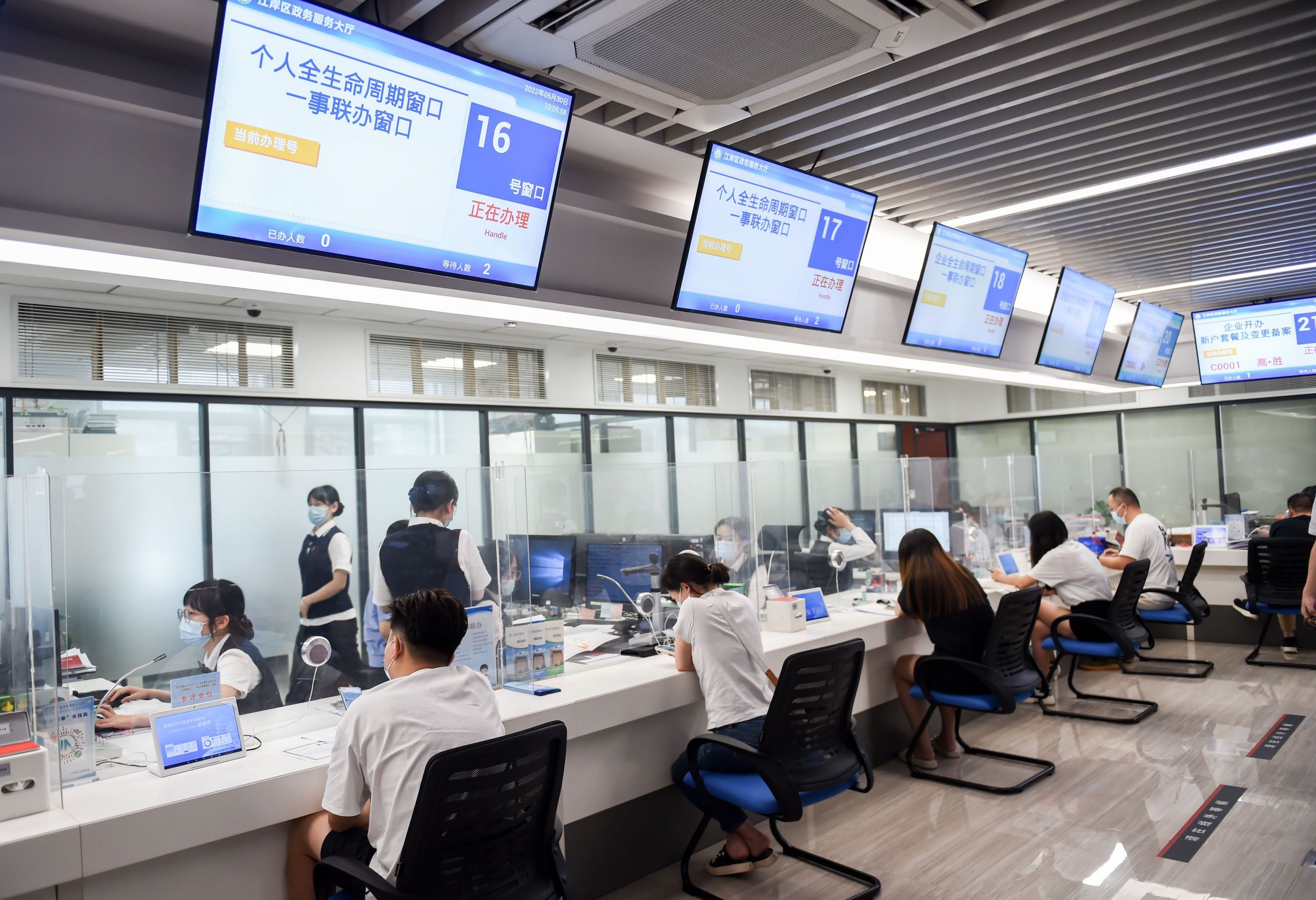 5月30日,市民在江岸区政务服务大厅全生命周期综合窗口办理事项。记者许魏巍 摄