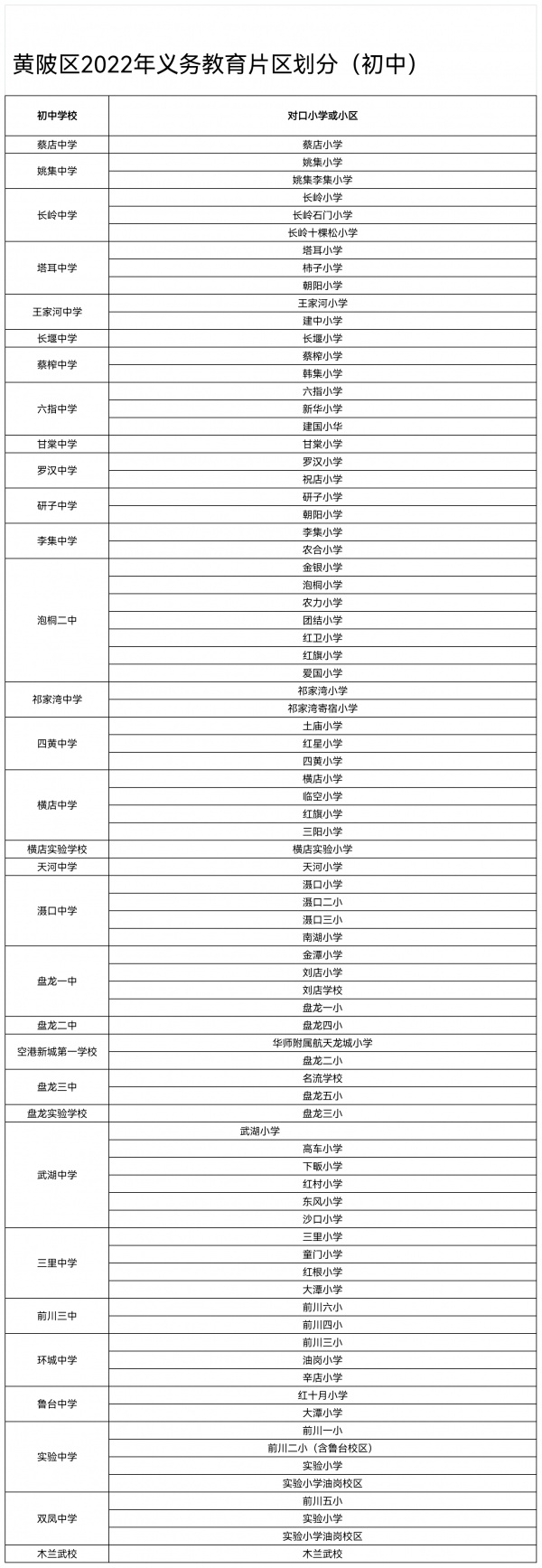 长江日报大武汉客户端5月31日讯(记者刘嘉 通讯员姚传龙)5月31日,黄陂区2022年义务教育对口划片信息出炉。具体如下: