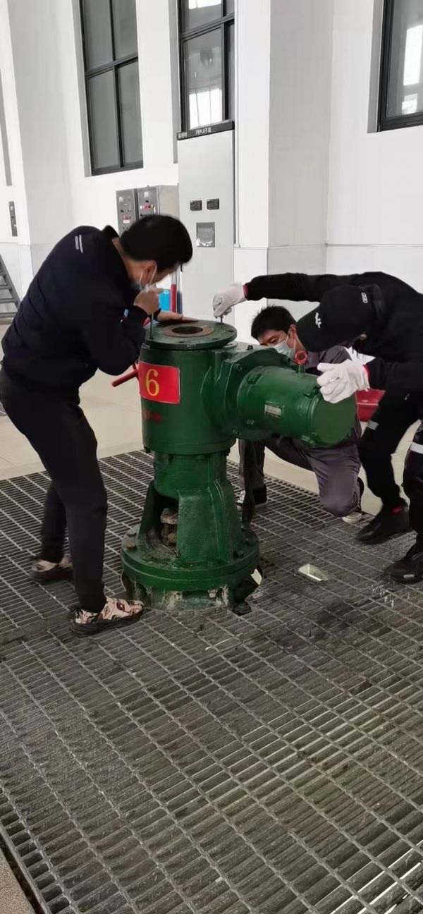 排水站工作人员正在进行设备检修。