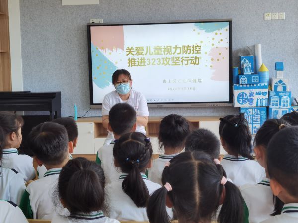 “小朋友们,阿姨建议大家经常到户外阳光下多活动活动。大家平时有挑食吗?记住阿姨的话,少吃甜食,多吃些粗粮、坚果和黄豆。另外手机和电视也不要长期近距离观看,多休息休息眼睛,才能不近视哦。”青山区妇幼保健院儿科主任吴芳面对面给孩子们讲解如何科学用眼。