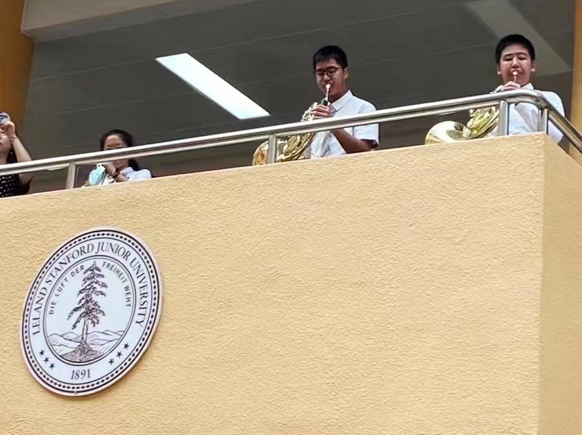 “这次的演出效果比平时训练还要好,因为教学楼的穹顶有很好的混响效果,比我们平时排练厅的效果更好。也正因为此,我们也更享受,更投入,想把最好的表现展示在老师和同学面前。”小提琴手文泓茗说。