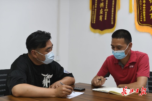 陈思(左)与园区相关负责人交流。 长江日报记者张衡 摄