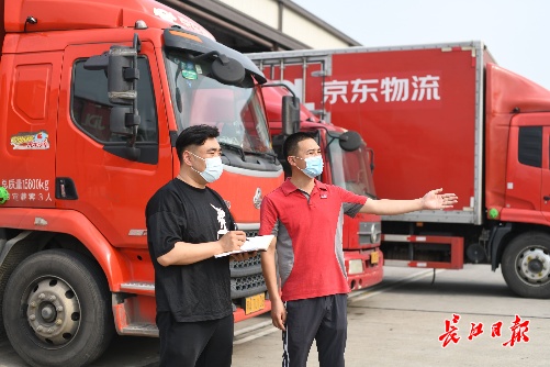 陈思(左)走访京东蔡甸物流园。 长江日报记者张衡 摄