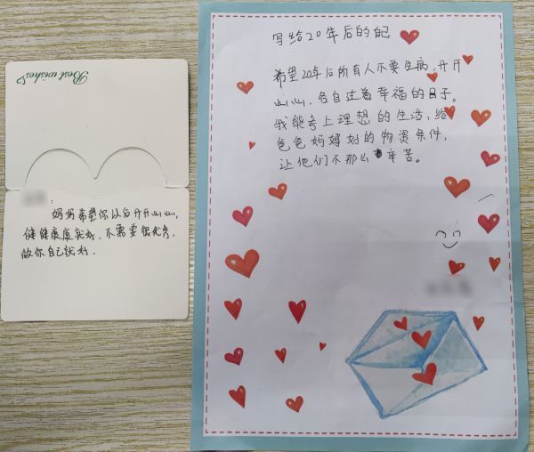 “所有人都不要生病。”患儿书写20年后的期望。通讯员赵炯 熊婉婷 摄