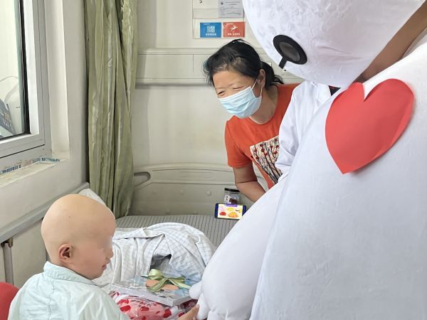 “爱心大白”走进病房为孩子们送上礼物。通讯员赵炯 熊婉婷 摄