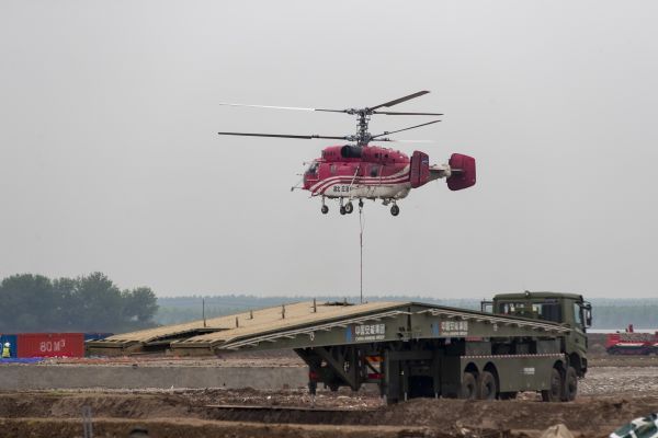 直升机在执行防汛抢险任务。 通讯员粟毅 摄