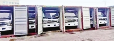 5月17日,航线正式运行的114台东风轻卡通过整车汽车运输来到阳逻港一期码头CFS装箱区。在了解整车的基础数据后,操作手、理货员、装卸人员共12名业务骨干成立专项小组,经反复研究测试确定装箱方案,将这批东风轻卡装进了47个大柜。
