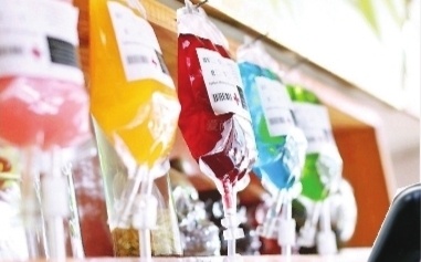 记者注意到,近年来,还有商家甚至推出了模仿医疗器械输液吊袋外观的“输液饮料”,包装包含输液袋挂架、输液袋、输液管和流速调节器等。